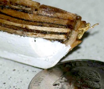 He noted, "This is important because the secret to ship in bottle building is the rigging. The bow has to be solid and hold the weight of the masts."