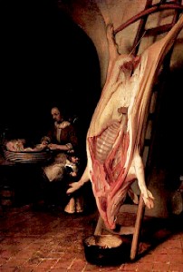 A Leg of Pork on a Pewter Plate on a Table (mid 17th century)